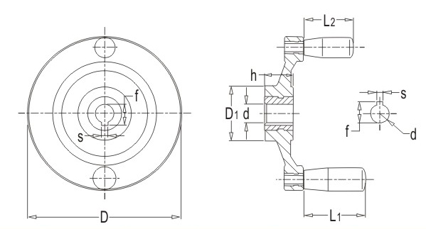 JS.101013 雙柄手輪 顏色:亮光黑 材質(zhì):酚醛樹(shù)脂(膠木) 用途:適用于小型機(jī)械裝備及精密儀器的調(diào)節(jié) 特性:光澤感強(qiáng),外形美觀,兩個(gè)手柄具備了微動(dòng)調(diào)整的優(yōu)勢(shì)。耐高溫、溶劑、機(jī)油及其他化學(xué)試劑。鋼制鐵芯表面處理防銹能力強(qiáng)