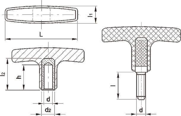 JS.102006 T型把手 顏色:啞光黑 材質(zhì):增強(qiáng)尼龍 用途:適用于各類機(jī)械裝備、五金工具、舞臺燈光設(shè)備等行業(yè) 特性:啞光飾面、外形美觀、機(jī)械強(qiáng)度高、堅固耐用、標(biāo)準(zhǔn)化使用、安裝簡便