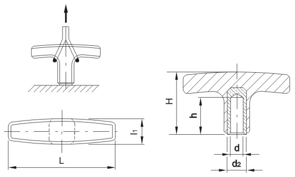 JS.102006 T-handles Color: Matte black Material: reinforced nylon Usage: Suitable for all kinds of machinery and equipment, hardware tools, stage lighting equipment and other industries